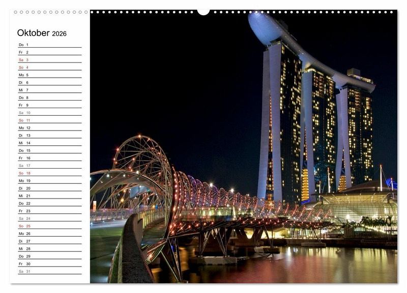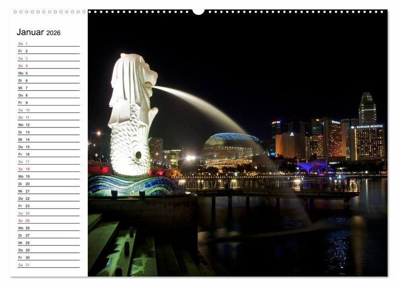 Der beliebte Singapur Kalender ist jetzt auch als Planer erhältlich. Die Republik Singapur ist flächenmässig der kleinste Staat in Südostasien und ein beliebtes Reiseziel für Reisende aus der ganzen Welt. Jedes Jahr kommen millionen Menschen in die asiatische Metropole um die Einzigartigkeit Singapurs zu erleben. Endecken Sie die Farbenvielfalt und die faszinierende Skyline von Singapur bei Nacht in diesem einzigartigen Kalender. Der ideale Planer für die ganze Familie.