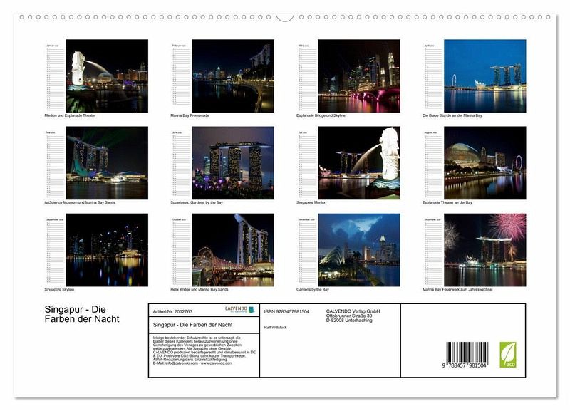 PREMIUM-LINIE - Brillanter Fotokalender mit 12 wunderschönen Motiven, Kunstdruck in Hochglanz in Museumsqualität.QUALITÄT - edle Materialien, stabile Rückwand mit 2 innovativen Einstecktaschen für eine optimale Präsentation an der Wand.NACHHALTIG - deutliche Abfallreduzierung durch bedarfsgerechte Einzelstückfertigung, umweltfreundliches FSC-zertifiziertes Papier, Produktion in Deutschland, klimabewusste Logistik.PERFEKTES GESCHENK - Kalender für Freunde und Familie, für Kinder und Erwachsene, jung und alt, zu Weihnachten, Geburtstag oder zwischendurch.Photoimpressionen von Singapur bei Nacht von Autor(in): Ralf Wittstock