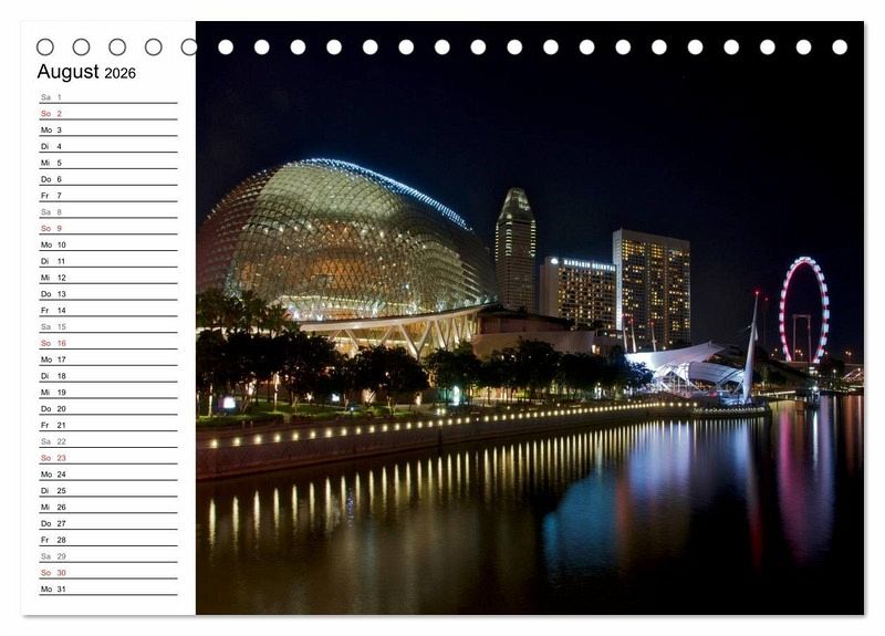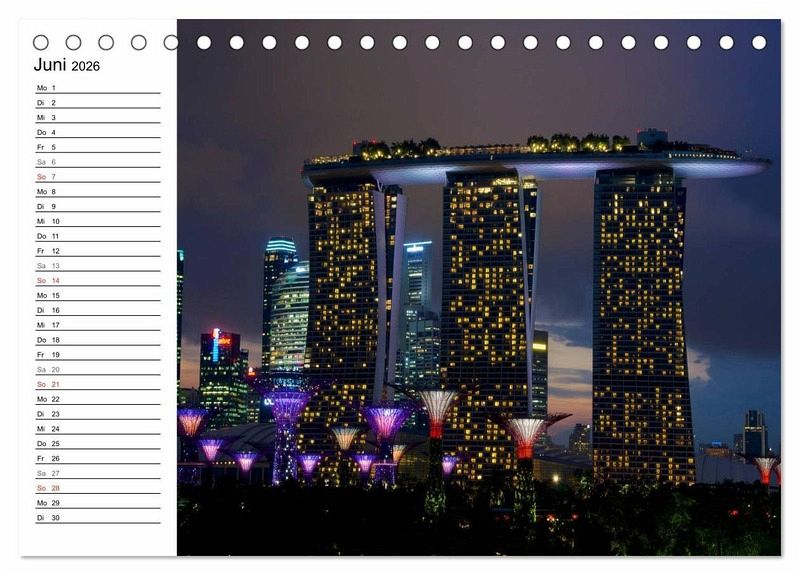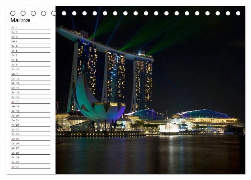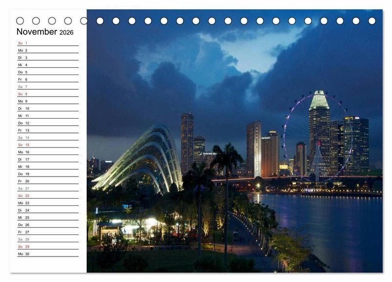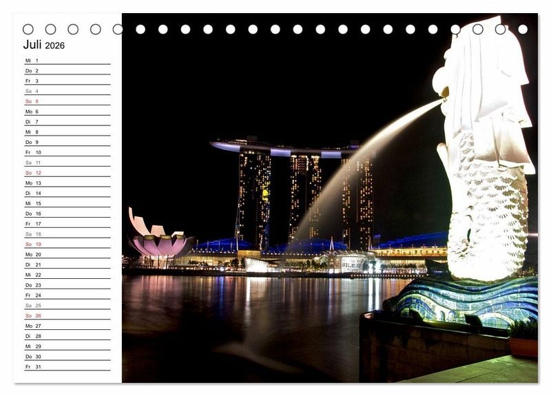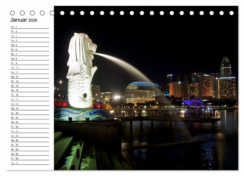 Der beliebte Singapur Kalender ist jetzt auch als Planer erhältlich. Die Republik Singapur ist flächenmässig der kleinste Staat in Südostasien und ein beliebtes Reiseziel für Reisende aus der ganzen Welt. Jedes Jahr kommen millionen Menschen in die asiatische Metropole um die Einzigartigkeit Singapurs zu erleben. Endecken Sie die Farbenvielfalt und die faszinierende Skyline von Singapur bei Nacht in diesem einzigartigen Kalender. Der ideale Planer für die ganze Familie.
