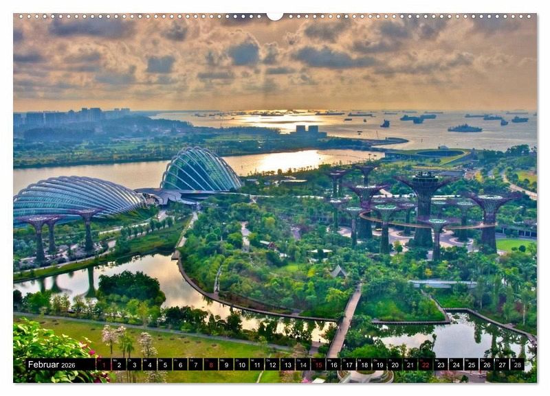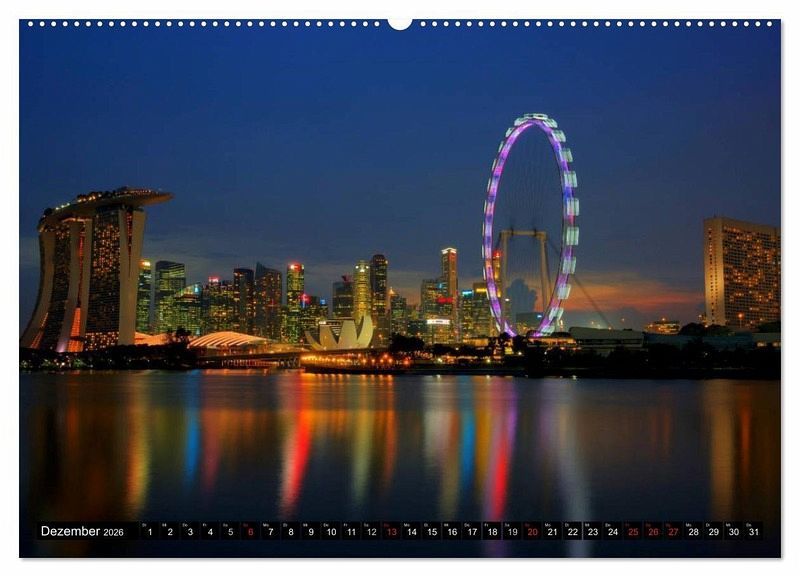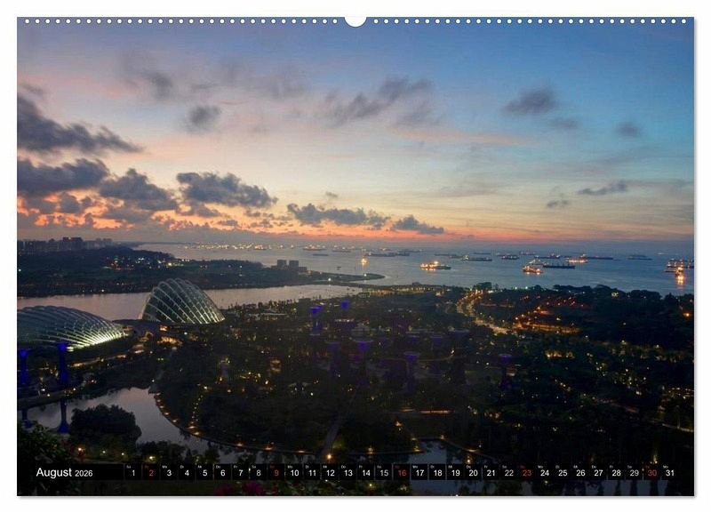 Die kleine Republik Singapur in Südostasien ist ein beliebtes Reiseziel für Reisende aus der ganzen Welt. Jedes Jahr kommen Millionen Menschen in die asiatische Metropole um die Einzigartigkeit Singapurs zu erleben. Singapur beeindruckt durch die vielfältige Architektur und das Leben mit der Natur. Entdecken Sie die Vielfalt der faszinierenden Skylines von Singapur bei Tag und Nacht in diesem einzigartigen Kalender.