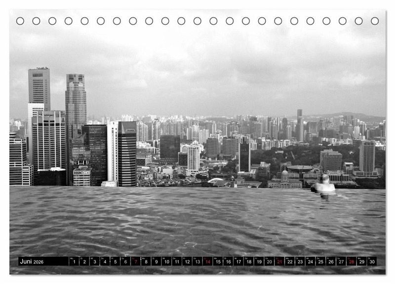 Schwarz - weiss Aufnahmen der Republik Singapur. Erleben Sie den flächenmässig kleinsten Staat in Südostasien, das beliebte Reiseziel für Reisende aus der ganzen Welt. Jedes Jahr reisen Millionen Menschen in die asiatische Metropole Singapur. Endecken Sie Singapur in beeindruckenden schwarz-weiss Aufnahmen in diesem einzigartigen Kalender.