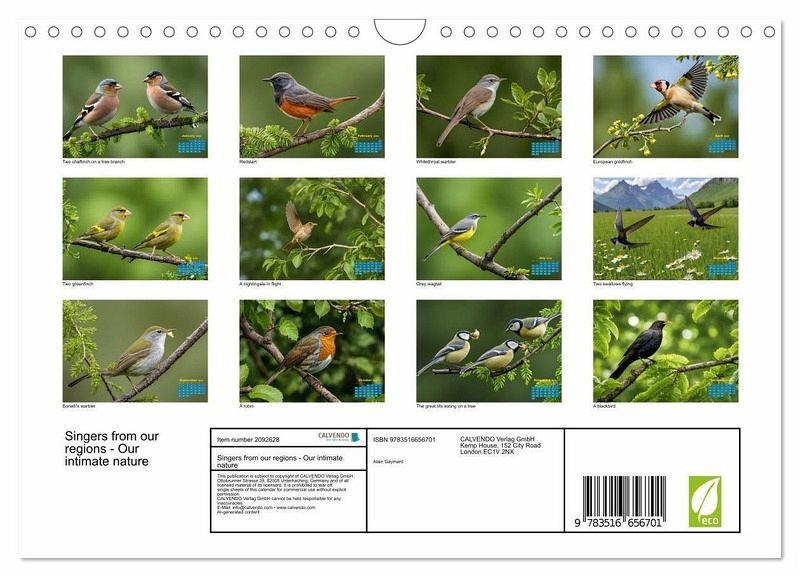 QUALITY - High-quality photo calendar with 12 beautiful images on light-resistant paper, robust spiral binding with hanger.SUSTAINABLE - Significant waste reduction due to print-on-demand production, environmentally friendly FSC-certified paper, produced in the UK, climate-conscious logistical processes.PERFECT GIFT - calendars for friends and family, for children, all ages and all occasions, from Christmas to birthdays and everything in between.LOTS OF CHOICE - Wall calendars in different sizes (DIN A4 and DIN A3), for any topic and personal taste, featuring photography, painting and illustrations.Discovering the natural world around us, author: Alain Gaymard
