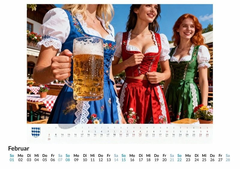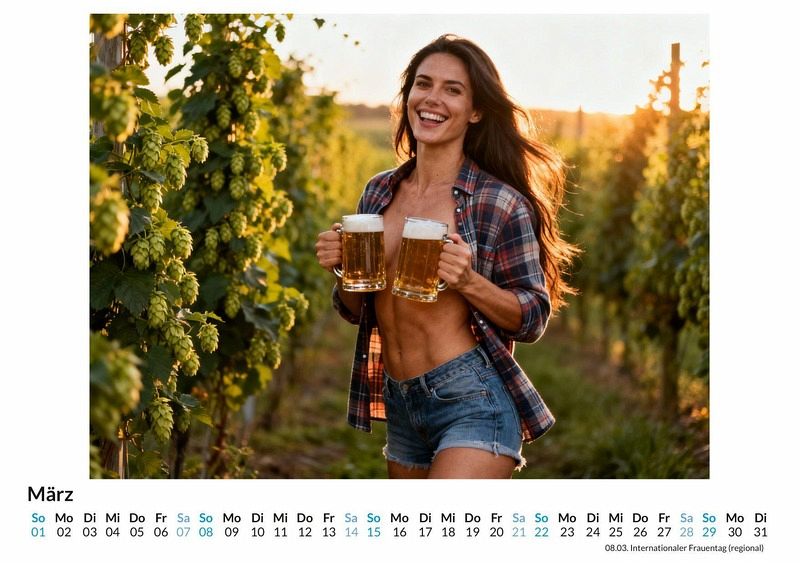 Eine Hommage an die Braukunst, interpretiert mit einem Hauch von Verführung und Lebensfreude. Der Kalender "Sinnliche Braumeisterinnen" verbindet die Welt des Bieres mit einer modernen, freizügigen Ästhetik. Jeden Monat entfaltet sich ein neues Bild, das die Leidenschaft für das Brauhandwerk auf eine unerwartete Art und Weise zelebriert. Dieser Kalender ist eine ausgezeichnete Wahl für Liebhaber von Bierkultur und traditionellem Handwerk, für Sammler von Kalendern mit einem Fokus auf weibliche Schönheit und Charme sowie für Personen, die ein ausgefallenes Geschenk mit Sinn für Humor und Ästhetik suchen. Der Kalender präsentiert zwölf Monatsblätter, auf denen Frauen in tief ausgeschnittenen, überquellenden Dirndln posieren. Die prall gefüllten Bierkrüge werden dabei geschickt vor der Brust gehalten, während der Blick der Braumeisterinnen mal stolz, mal verschmitzt ist. Jedes Bild fängt eine Szene ein, die bayerische Lebensfreude mit einem deutlichen Augenzwinkern darstellt. Diese Szenen wurden nicht in einer realen Brauerei fotografiert, sondern durch die kreative Kraft von Algorithmen zum Leben erweckt, um eine einzigartige visuelle Welt zu schaffen. Der Käufer kann zwölf sorgfältig gestaltete Monatsmotive im Großformat, ein übersichtliches Kalendarium für die persönliche Jahresplanung und eine Sammlung von Bildern erwarten, die das Thema Braukunst neu und gewagt interpretieren. Zusammenfassend bietet dieser Kalender eine kühne Mischung aus traditionellen Elementen und einer modernen, sinnlichen Darstellung. Er ist ein Blickfang für jede Wand und regt mit Sicherheit zu Gesprächen an. Es lohnt sich, die zwölf Motive selbst zu entdecken und sich ein Jahr lang von dieser besonderen Interpretation der Braukunst begleiten zu lassen.