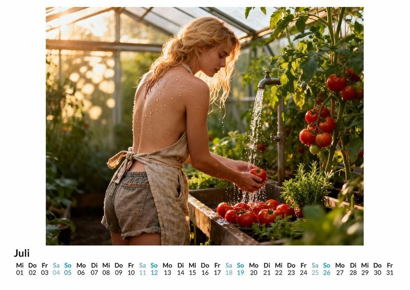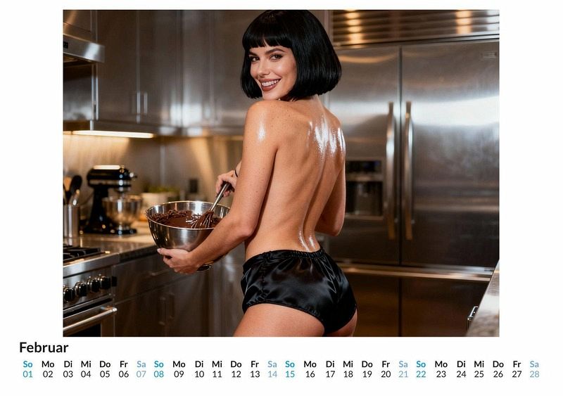 Einleitung Die Küche ist mehr als nur ein Ort der Zubereitung. Sie ist ein Raum der Kreativität und der Sinnlichkeit. Der Kalender "Sinnliche Köchinnen" fängt genau diese Atmosphäre ein und interpretiert das Thema Kochen auf eine verführerische Weise. Zwölf Motive widmen sich der Ästhetik des weiblichen Körpers in einem kulinarischen Umfeld. Für wen ist dieser Kalender geeignet? Für Liebhaber ästhetischer Aktfotografie Für Suchende nach einem besonderen Geschenk mit einem Hauch von Erotik Für Sammler von Kalendern, die eine unkonventionelle Verbindung von Kulinarik und Sinnlichkeit schätzen Kurzer beschreibender Text Monat für Monat entfaltet sich eine Szene, die den Blick auf das Wesentliche lenkt. Im Mittelpunkt steht die weibliche Silhouette, nur von einer kleinen Schürze bekleidet und von hinten fotografiert. Der Fokus liegt auf dem Zusammenspiel von Licht, Schatten und den Konturen des nackten Rückens und Pos. Jedes dieser Bilder wurde durch fortschrittliche Algorithmen erschaffen und in eine stimmungsvolle Küchenszenerie platziert. Was der Kalender bietet 12 Monatsmotive im Format DIN A3 Gedruckt auf Bilderdruckpapier mit einer praktischen Spiralbindung Ein Deckblatt und eine Übersichtsseite mit allen Motiven Zusammenfassung und Ausblick Der Kalender "Sinnliche Köchinnen" ist eine Komposition aus kulinarischer Inspiration und ästhetischer Fotografie. Er begleitet durch das Jahr mit Motiven, die eine bekannte Thematik neu und aufregend darstellen. Ein Blick auf die Monatsansichten enthüllt die volle Vielfalt der präsentierten Szenen.