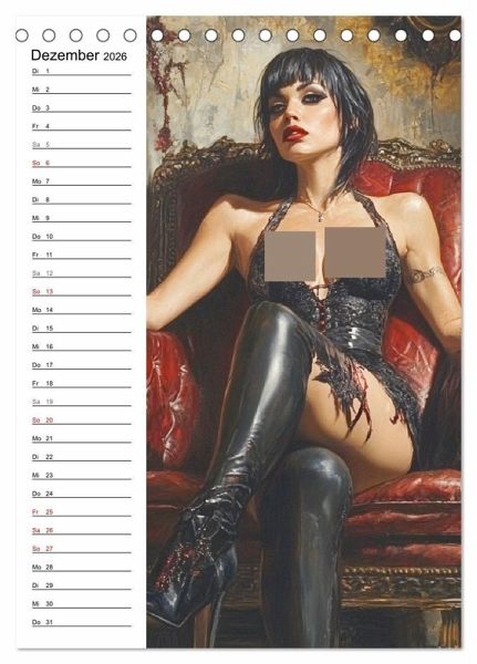 Diese Illustrationen wurden mit Hilfe von KI erstellt und sind eine Hommage an die weibliche Sinnlichkeit und Stärke. In jedem Monat zeigt ein faszinierendes Bild eine selbstbewusste Frau in verführerischen Dessous, Latex oder stilvollem Leder. Die Werke sind Ausdruck von Anmut, Schönheit und Leidenschaft. Sie laden den Betrachter ein, die Anmut und den Reiz der femininen Ausstrahlung zu erleben.