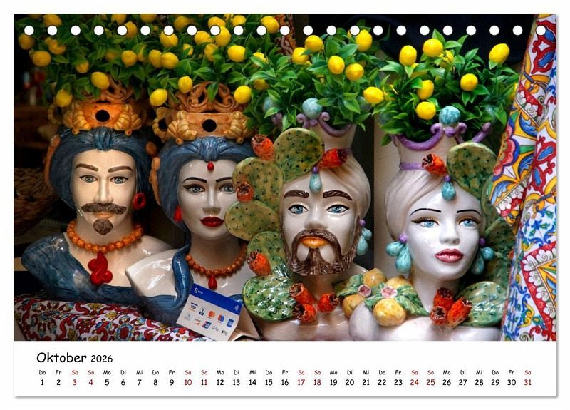 Der Kalender zeigt 12 faszinierende Facetten der ausgewählten Regionen Siziliens und lässt Erinnerungen an einen vergangenen oder Vorfreude auf einen zukünftigen Urlaub wach werden.