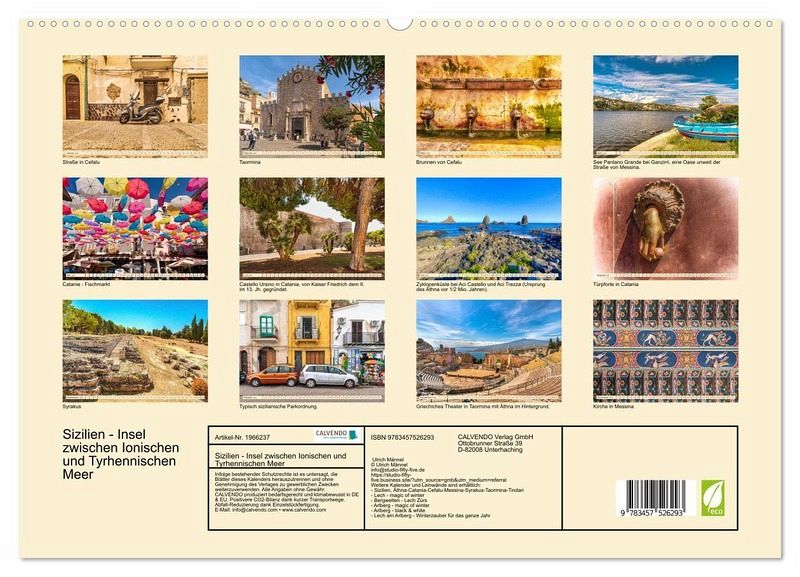 PREMIUM-LINIE - Brillanter Fotokalender mit 12 wunderschönen Motiven, Kunstdruck in Hochglanz in Museumsqualität.QUALITÄT - edle Materialien, stabile Rückwand mit 2 innovativen Einstecktaschen für eine optimale Präsentation an der Wand.NACHHALTIG - deutliche Abfallreduzierung durch bedarfsgerechte Einzelstückfertigung, umweltfreundliches FSC-zertifiziertes Papier, Produktion in Deutschland, klimabewusste Logistik.PERFEKTES GESCHENK - Kalender für Freunde und Familie, für Kinder und Erwachsene, jung und alt, zu Weihnachten, Geburtstag oder zwischendurch.Eine Sizilienreise ist eine Wanderung durch die Zeitgeschichte von der Antike bis zur Gegenwart. Die schönsten Orte und Landschaften finden sich hier wieder. von Autor(in): studio-fifty-five