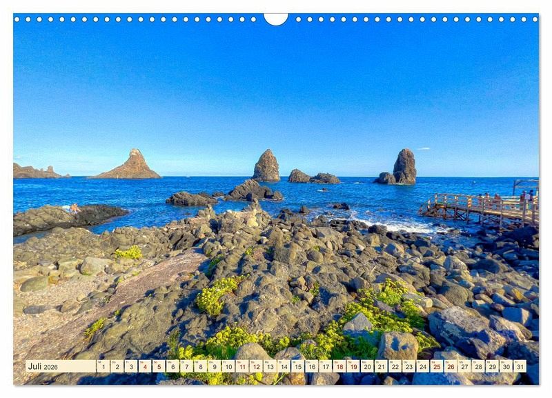 Juli: Zyklopenküste bei Aci Castello und Aci Trezza (Ursprung des Äthna vor 1/2 Mio. Jahren).