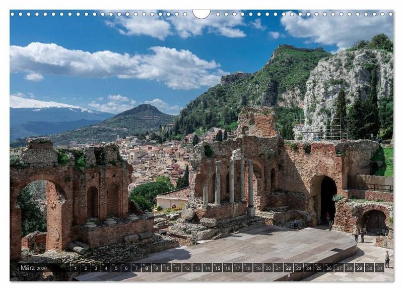 März: Teatro Greco mit Ätna im Hintergrund, Taormina