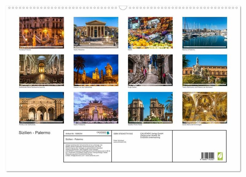 Dieser farbenfrohe Kalender vom Reisefotografen Peter Schickert zeigt die pulsierende Metropole Palermo ganz im Süden Italiens von der besten Seite: mit historischen Palästen, fantastischen Kirchen aber auch dem Alltag in der Hauptstadt Siziliens.
