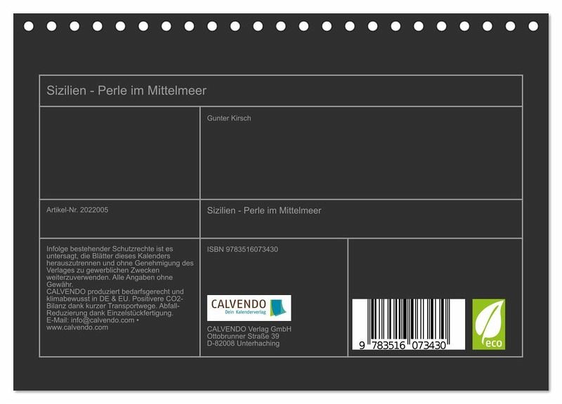 QUALITÄT - Hochwertiger Fotokalender mit 12 wunderschönen Motiven auf lichtbeständigem Bilderdruckpapier, robuste Spiralbindung.NACHHALTIG - deutliche Abfallreduzierung durch bedarfsgerechte Einzelstückfertigung, umweltfreundliches FSC-zertifiziertes Papier, Produktion in Deutschland, klimabewusste Logistik.PERFEKTES GESCHENK- Kalender für Freunde und Familie, für Kinder und Erwachsene, jung und alt, zu Weihnachten, Geburtstag oder zwischendurch.VIELFALT - Bildkalender in verschiedenen Formaten, z.B. DIN A5, DIN A4, DIN A3 sowie DIN A2. Ob Naturmotiv, Gemälde oder Fotos, ideal für ein persönliches Wohlfühlambiente.Auf der italienischen Mittelmeerinsel Sizilien gibt es viel zu entdecken! von Autor(in): Gunter Kirsch
