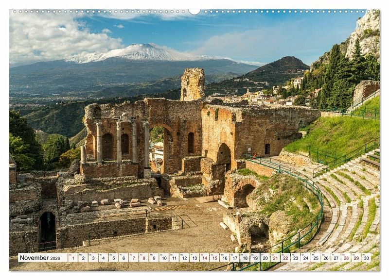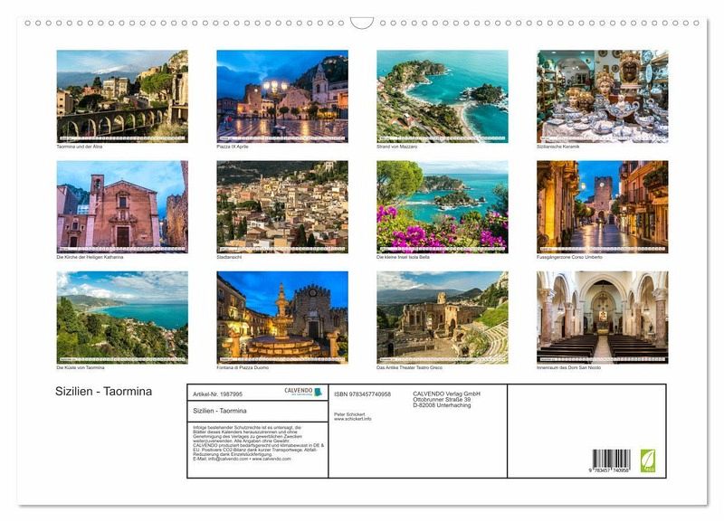 Dieser Kalender des Reisefotografen Peter Schickert zeigt warum das sizilianische Taormina schon seit jeher ein äußerst beliebtes Reiseziel ist: neben der unvergleichlichen Lage hoch über dem Meer mit Blick auf den Ätna locken Traumstrände und kulturelle Highlights wie das Teatro Greco.