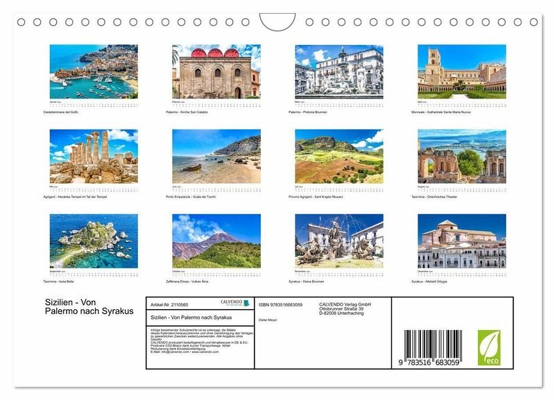 QUALITÄT - Hochwertiger Fotokalender mit 12 wunderschönen Motiven auf lichtbeständigem Bilderdruckpapier, robuste Spiralbindung mit Aufhängebügel.NACHHALTIG - deutliche Abfallreduzierung durch bedarfsgerechte Einzelstückfertigung, umweltfreundliches FSC-zertifiziertes Papier, Produktion in Deutschland, klimabewusste Logistik.PERFEKTES GESCHENK - Kalender für Freunde und Familie, für Kinder und Erwachsene, jung und alt, zu Weihnachten, Geburtstag oder zwischendurch.VIELFALT - Bildkalender in verschiedenen Formaten, z.B. DIN A5, DIN A4, DIN A3 sowie DIN A2. Ob Naturmotiv, Gemälde oder Fotos, ideal für ein persönliches Wohlfühlambiente.Sizilianische Impressionen zwischen Palermo und Syrakus von Autor(in): Dieter Meyer