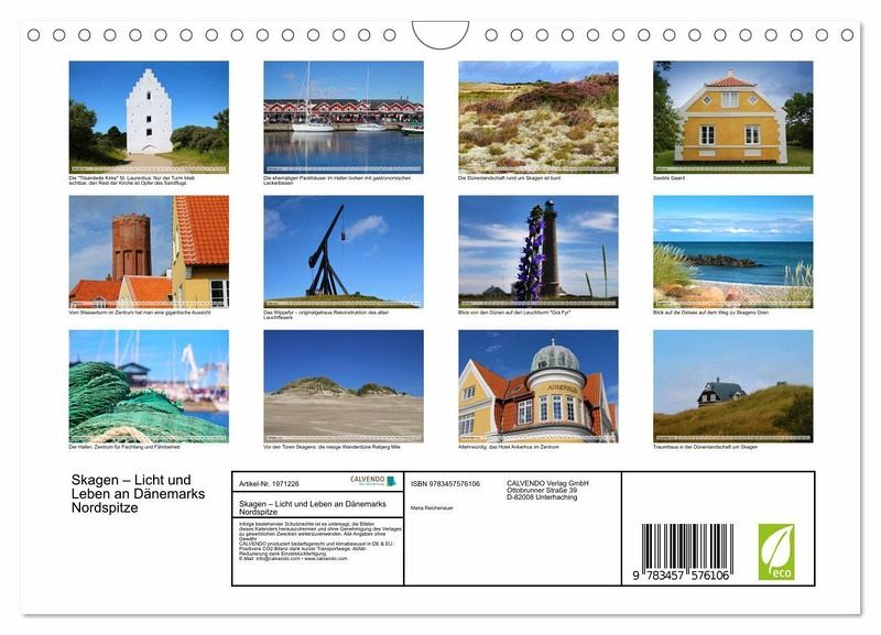 QUALITÄT - Hochwertiger Fotokalender mit 12 wunderschönen Motiven auf lichtbeständigem Bilderdruckpapier, robuste Spiralbindung mit Aufhängebügel.NACHHALTIG - deutliche Abfallreduzierung durch bedarfsgerechte Einzelstückfertigung, umweltfreundliches FSC-zertifiziertes Papier, Produktion in Deutschland, klimabewusste Logistik.PERFEKTES GESCHENK - Kalender für Freunde und Familie, für Kinder und Erwachsene, jung und alt, zu Weihnachten, Geburtstag oder zwischendurch.VIELFALT - Bildkalender in verschiedenen Formaten, z.B. DIN A5, DIN A4, DIN A3 sowie DIN A2. Ob Naturmotiv, Gemälde oder Fotos, ideal für ein persönliches Wohlfühlambiente.Ein Rundgang durch und um Skagen, die nördlichste Spitze Dänemarks von Autor(in): Maria Reichenauer Maria