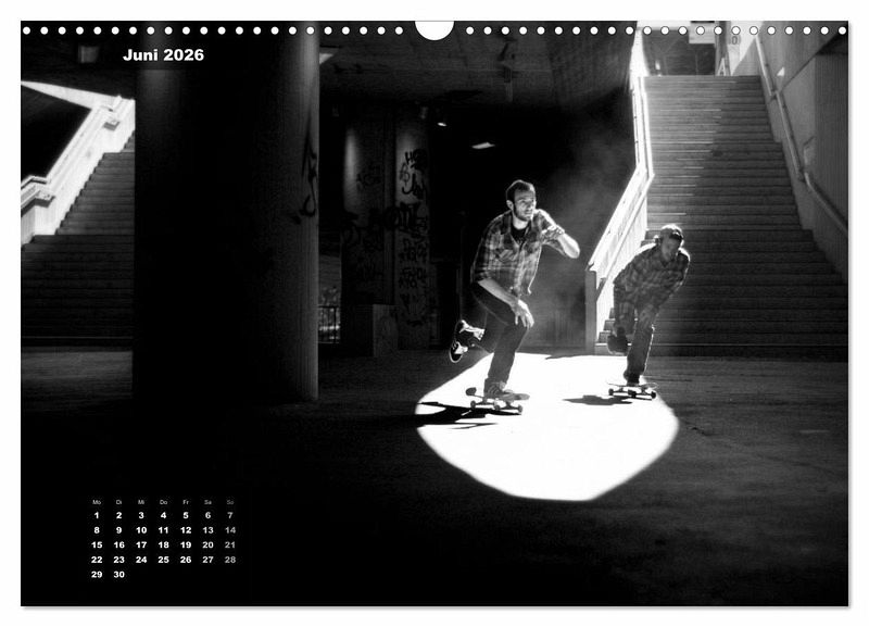 Skateboarden in Schwarz-Weiß ist ein Kalender des Stuttgarter Skateboardfotografen Daniel Wagner. Er zeigt 12 seiner besten Fotografien von nationalen und internationalen Skateboardgrößen in klassischem Schwarz/Weiss und einer einzigartigen Bildsprache.