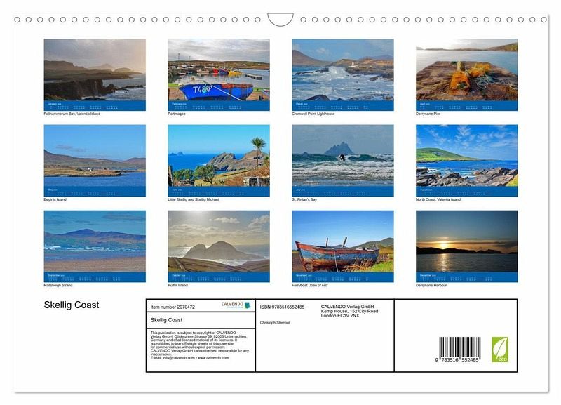 QUALITY - High-quality photo calendar with 12 beautiful images on light-resistant paper, robust spiral binding with hanger.SUSTAINABLE - Significant waste reduction due to print-on-demand production, environmentally friendly FSC-certified paper, produced in the UK, climate-conscious logistical processes.PERFECT GIFT - calendars for friends and family, for children, all ages and all occasions, from Christmas to birthdays and everything in between.LOTS OF CHOICE - Wall calendars in different sizes (DIN A4 and DIN A3), for any topic and personal taste, featuring photography, painting and illustrations.Ireland's most lovely coast, author: Christoph Stempel