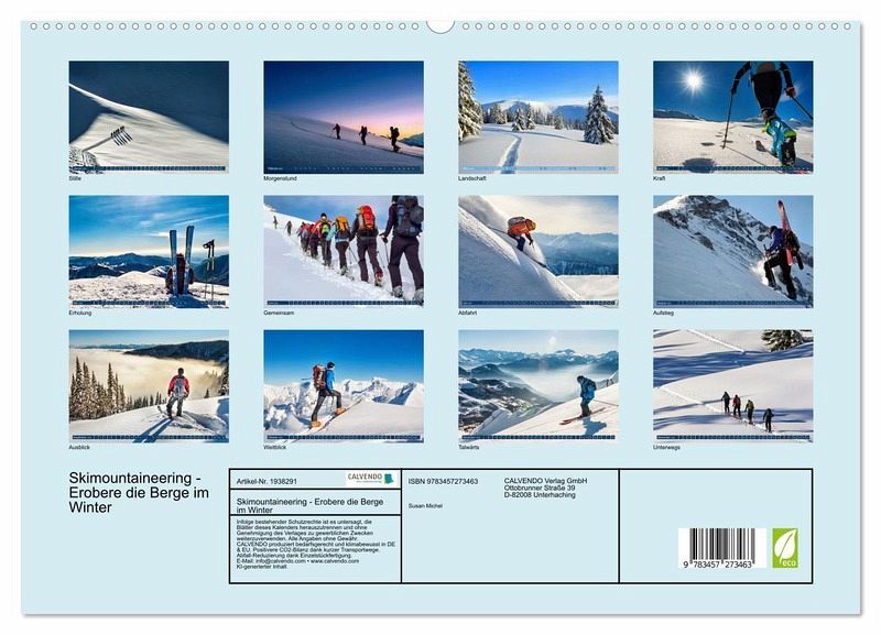 PREMIUM-LINIE - Brillanter Fotokalender mit 12 wunderschönen Motiven, Kunstdruck in Hochglanz in Museumsqualität.QUALITÄT - edle Materialien, stabile Rückwand mit 2 innovativen Einstecktaschen für eine optimale Präsentation an der Wand.NACHHALTIG - deutliche Abfallreduzierung durch bedarfsgerechte Einzelstückfertigung, umweltfreundliches FSC-zertifiziertes Papier, Produktion in Deutschland, klimabewusste Logistik.PERFEKTES GESCHENK - Kalender für Freunde und Familie, für Kinder und Erwachsene, jung und alt, zu Weihnachten, Geburtstag oder zwischendurch.Gipfelstürmer im Pulverschnee von Autor(in): Susan Michel