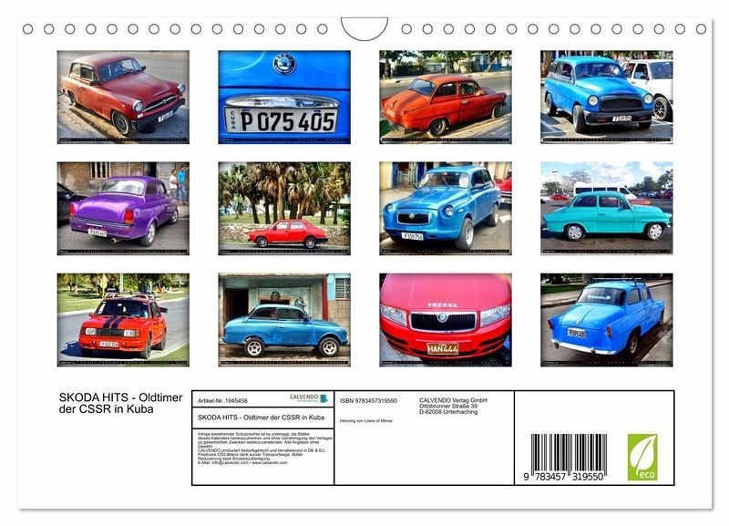 QUALITÄT - Hochwertiger Fotokalender mit 12 wunderschönen Motiven auf lichtbeständigem Bilderdruckpapier, robuste Spiralbindung mit Aufhängebügel.NACHHALTIG - deutliche Abfallreduzierung durch bedarfsgerechte Einzelstückfertigung, umweltfreundliches FSC-zertifiziertes Papier, Produktion in Deutschland, klimabewusste Logistik.PERFEKTES GESCHENK - Kalender für Freunde und Familie, für Kinder und Erwachsene, jung und alt, zu Weihnachten, Geburtstag oder zwischendurch.VIELFALT - Bildkalender in verschiedenen Formaten, z.B. DIN A5, DIN A4, DIN A3 sowie DIN A2. Ob Naturmotiv, Gemälde oder Fotos, ideal für ein persönliches Wohlfühlambiente.Verschiedene Modelle von Skoda in Kuba von Autor(in): Henning von Loewis of Menar