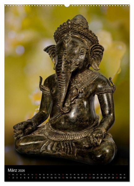 Eine Auswahl beeindruckender Skulpturen vor effektvoll gestalteten Hintergründen - hinduistisch und buddhistisch. Der kunstvoll gestaltete Kalender ist eine wunderschöne Wanddekoration mit inspirierender Wirkung.