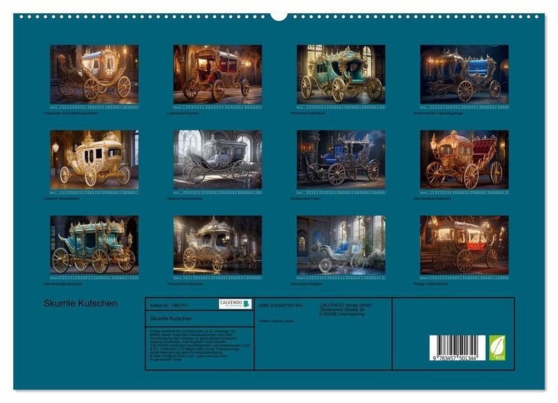 PREMIUM-LINIE - Brillanter Fotokalender mit 12 wunderschönen Motiven, Kunstdruck in Hochglanz in Museumsqualität.QUALITÄT - edle Materialien, stabile Rückwand mit 2 innovativen Einstecktaschen für eine optimale Präsentation an der Wand.NACHHALTIG - deutliche Abfallreduzierung durch bedarfsgerechte Einzelstückfertigung, umweltfreundliches FSC-zertifiziertes Papier, Produktion in Deutschland, klimabewusste Logistik.PERFEKTES GESCHENK - Kalender für Freunde und Familie, für Kinder und Erwachsene, jung und alt, zu Weihnachten, Geburtstag oder zwischendurch.Skurrile Kutschen sind außergewöhnliche und fantasievolle Fortbewegungsmittel, die sich durch ihre einzigartigen Designs und unkonventionellen Elemente auszeichnen. von Autor(in): Steffen Gierok ; Magik Artist Design