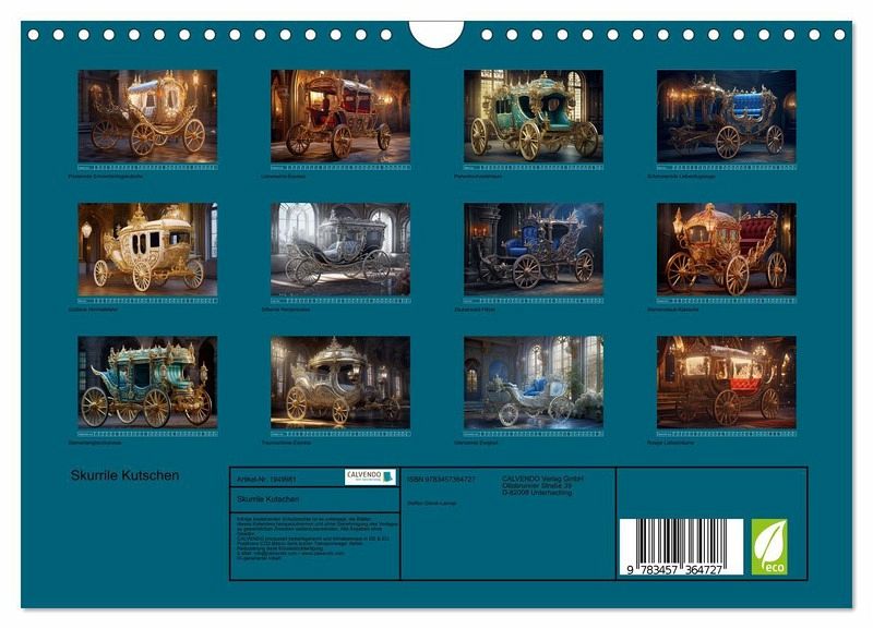 QUALITÄT - Hochwertiger Fotokalender mit 12 wunderschönen Motiven auf lichtbeständigem Bilderdruckpapier, robuste Spiralbindung mit Aufhängebügel.NACHHALTIG - deutliche Abfallreduzierung durch bedarfsgerechte Einzelstückfertigung, umweltfreundliches FSC-zertifiziertes Papier, Produktion in Deutschland, klimabewusste Logistik.PERFEKTES GESCHENK - Kalender für Freunde und Familie, für Kinder und Erwachsene, jung und alt, zu Weihnachten, Geburtstag oder zwischendurch.VIELFALT - Bildkalender in verschiedenen Formaten, z.B. DIN A5, DIN A4, DIN A3 sowie DIN A2. Ob Naturmotiv, Gemälde oder Fotos, ideal für ein persönliches Wohlfühlambiente.Skurrile Kutschen sind außergewöhnliche und fantasievolle Fortbewegungsmittel, die sich durch ihre einzigartigen Designs und unkonventionellen Elemente auszeichnen. von Autor(in): Steffen Gierok ; Magik Artist Design
