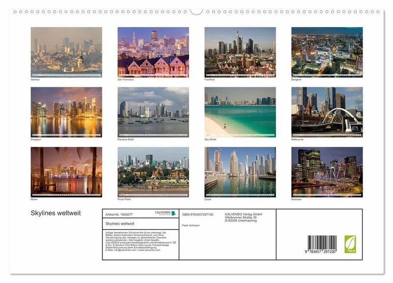 PREMIUM-LINIE - Brillanter Fotokalender mit 12 wunderschönen Motiven, Kunstdruck in Hochglanz in Museumsqualität.QUALITÄT - edle Materialien, stabile Rückwand mit 2 innovativen Einstecktaschen für eine optimale Präsentation an der Wand.NACHHALTIG - deutliche Abfallreduzierung durch bedarfsgerechte Einzelstückfertigung, umweltfreundliches FSC-zertifiziertes Papier, Produktion in Deutschland, klimabewusste Logistik.PERFEKTES GESCHENK - Kalender für Freunde und Familie, für Kinder und Erwachsene, jung und alt, zu Weihnachten, Geburtstag oder zwischendurch.13 urbane Ansichten von Skylines auf 5 Kontinenten von Autor(in): Peter Schickert