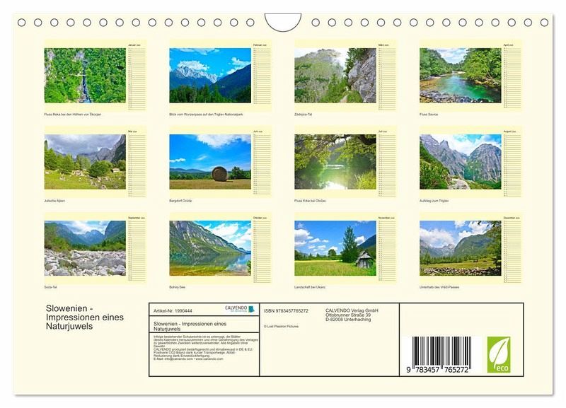 Slowenien - ein kleines Land mit unterschiedlichsten Landschaftsformen. Dieser Planer zeigt einen kleinen Ausschnitt dieser Vielfalt in prächtigen Bildern mit spektakulären Aus- und Einsichten, u. a. aus dem Triglav-Nationalpark, der südöstlichen Tiefebene und der Bergregion im Süden.
