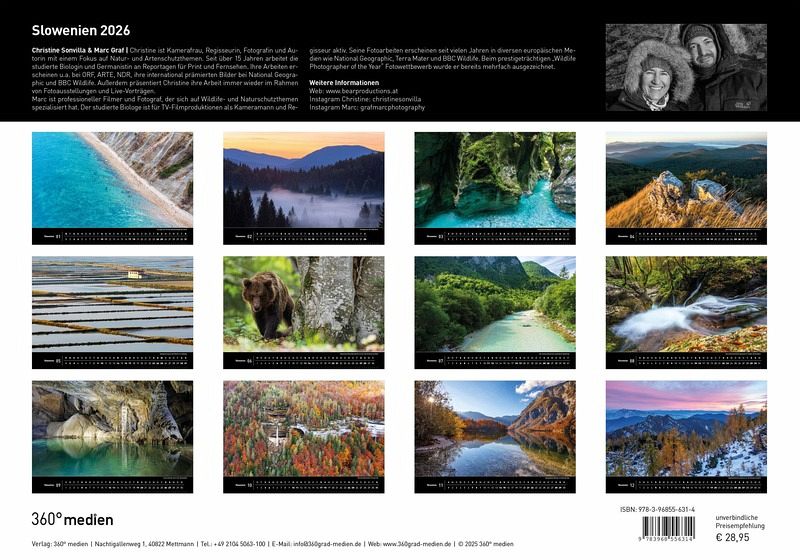 Aus traumhaften Slowenien-Bildern der Fotograf_innen Christine Sonvilla und Marc Graf hat die Redaktion von 360° medien die 13 schönsten Motive ausgewählt und in diesem Kalender zusammen gestellt. Präsentiert werden die Fotos auf hochwertigem Papier im Format 50 cm x 35 cm.Ingo Öland