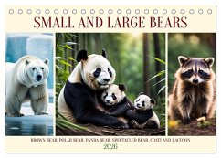 The large bears include brown bears, polar bears and the rare giant pandas. They can reach an impressive size of up to 3 metres and weigh over 500 kilograms. These bears are usually very powerful and have an impressive stature. Small bears, on the other hand, include raccoons or coatis, which are much smaller and more manoeuvrable. Both large and small bears are fascinating animals that can be found in different parts of the world and play an important role in the ecosystem. The beautiful animals were staged with the help of AI.