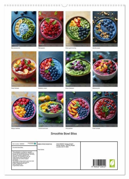 Discover a year of vibrant health with our Smoothie Bowl Calendar. Each month showcases a different, beautifully crafted smoothie bowl, bursting with fresh, seasonal fruits. Perfect for inspiring healthy habits, these colorful dishes will delight not only veggie fans but anyone who enjoys a fresh, delicious start to their day. Feel good, live well, and savor the beauty of wholesome food all year round.