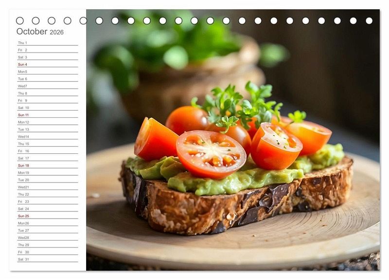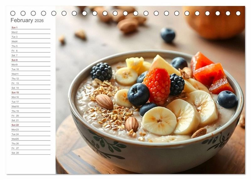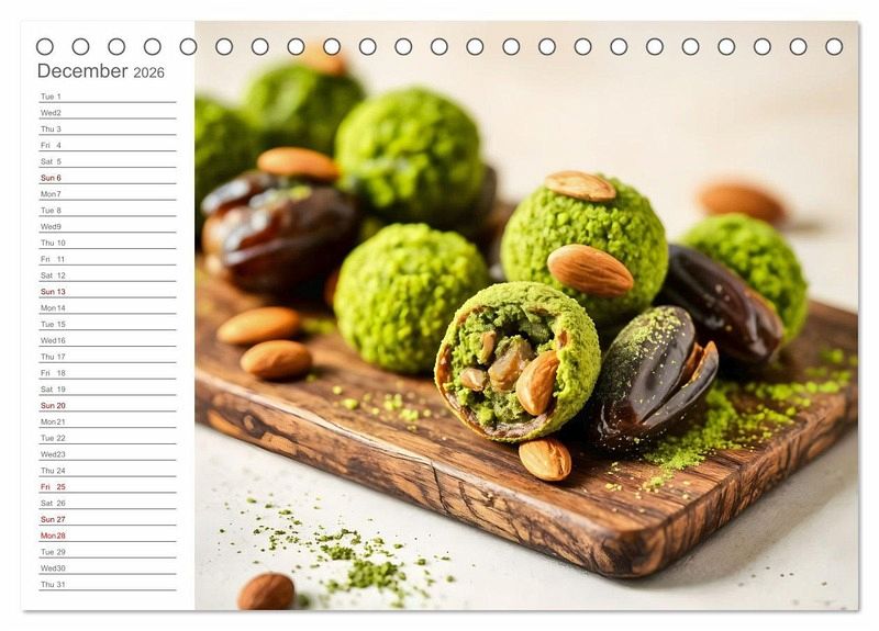 Discover new, delicious superfood snacks every month with our unique superfood calendar. Each page features stunning AI generated food photography, from creamy chia pudding to energising matcha energy bites and fruity acai bowls. Nutrient rich snacks for more energy and well being with creatively designed AI images for aesthetic moments of pleasure. Make your year a year of conscious nutrition. Stylish, delicious and full of power.