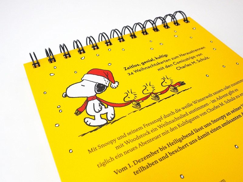 Der Dezember ist da - und mit ihm die Weihnachtszeit in Snoopys Hundehütte! 24 bunte Peanuts-Strips voller Charme und Witz laden dazu ein, sich mit dem kultigen Beagle auf die besinnlichste Zeit des Jahres einzustimmen. Mit Snoopy und seinem Fressnapf durch die weiße Winterwelt sausen oder zusammen mit Woodstock ein Weihnachtslied anstimmen - täglich gibt es ein neues Abenteuer mit den Kultfiguren von Charles M. Schulz zu entdecken.