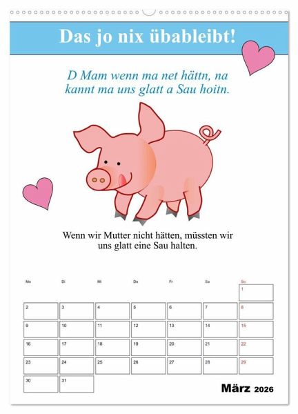 PREMIUM-LINIE - Brillanter Fotokalender mit 12 wunderschönen Motiven, Kunstdruck in Hochglanz in Museumsqualität.QUALITÄT - edle Materialien, stabile Rückwand mit 2 innovativen Einstecktaschen für eine optimale Präsentation an der Wand.NACHHALTIG - deutliche Abfallreduzierung durch bedarfsgerechte Einzelstückfertigung, umweltfreundliches FSC-zertifiziertes Papier, Produktion in Deutschland, klimabewusste Logistik.PERFEKTES GESCHENK - Kalender für Freunde und Familie, für Kinder und Erwachsene, jung und alt, zu Weihnachten, Geburtstag oder zwischendurch.Bairische Redensarten mit Übersetzung von Autor(in): Elisabeth Stanzer