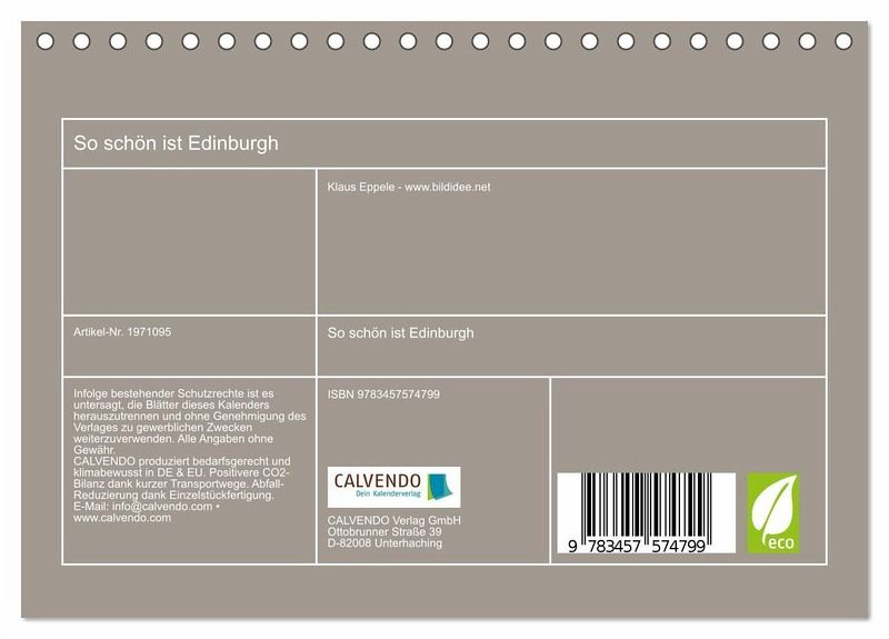 QUALITÄT - Hochwertiger Fotokalender mit 12 wunderschönen Motiven auf lichtbeständigem Bilderdruckpapier, robuste Spiralbindung.NACHHALTIG - deutliche Abfallreduzierung durch bedarfsgerechte Einzelstückfertigung, umweltfreundliches FSC-zertifiziertes Papier, Produktion in Deutschland, klimabewusste Logistik.PERFEKTES GESCHENK - Kalender für Freunde und Familie, für Kinder und Erwachsene, jung und alt, zu Weihnachten, Geburtstag oder zwischendurch.VIELFALT - Bildkalender in verschiedenen Formaten, z.B. DIN A5, DIN A4, DIN A3 sowie DIN A2. Ob Naturmotiv, Gemälde oder Fotos, ideal für ein persönliches Wohlfühlambiente.Die Highlights der schottischen Hauptstadt von Autor(in): Klaus Eppele