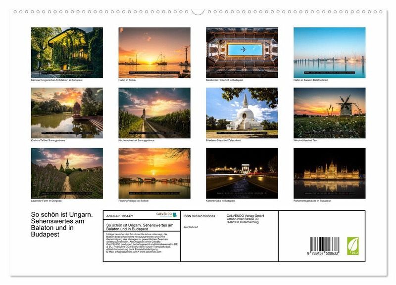 PREMIUM-LINIE - Brillanter Fotokalender mit 12 wunderschönen Motiven, Kunstdruck in Hochglanz in Museumsqualität.QUALITÄT - edle Materialien, stabile Rückwand mit 2 innovativen Einstecktaschen für eine optimale Präsentation an der Wand.NACHHALTIG - deutliche Abfallreduzierung durch bedarfsgerechte Einzelstückfertigung, umweltfreundliches FSC-zertifiziertes Papier, Produktion in Deutschland, klimabewusste Logistik.PERFEKTES GESCHENK - Kalender für Freunde und Familie, für Kinder und Erwachsene, jung und alt, zu Weihnachten, Geburtstag oder zwischendurch.Vielfältige Fotos aus Ungarn von Autor(in): Jan Wehnert
