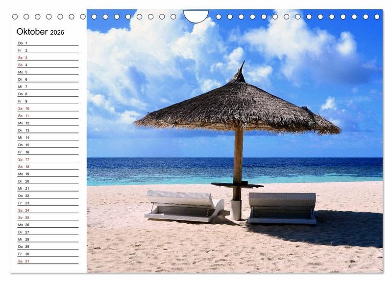 In diesem Kalender mit Planerfunktion finden Sie einzigartige Bilder von den Malediven - ein traumhaftes Paradies im Indischen Ozean mit puderzuckerweißen Stränden. Tief-türkis-blaues Meer und viele schattenspendende Kokospalmen laden ein zum Träumen. Entdecken Sie die außergewöhnliche und atemberaubende Natur der Inseln.