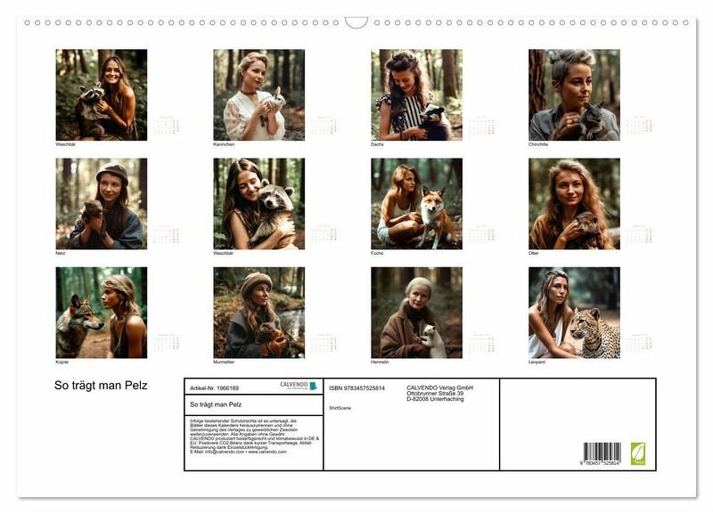 QUALITÄT - Hochwertiger Fotokalender mit 12 wunderschönen Motiven auf lichtbeständigem Bilderdruckpapier, robuste Spiralbindung mit Aufhängebügel.NACHHALTIG - deutliche Abfallreduzierung durch bedarfsgerechte Einzelstückfertigung, umweltfreundliches FSC-zertifiziertes Papier, Produktion in Deutschland, klimabewusste Logistik.PERFEKTES GESCHENK - Kalender für Freunde und Familie, für Kinder und Erwachsene, jung und alt, zu Weihnachten, Geburtstag oder zwischendurch.VIELFALT - Bildkalender in verschiedenen Formaten, z.B. DIN A5, DIN A4, DIN A3 sowie DIN A2. Ob Naturmotiv, Gemälde oder Fotos, ideal für ein persönliches Wohlfühlambiente.So trägt man Pelz - Aktivismus gegen echte Pelze von Autor(in): ShirtScene