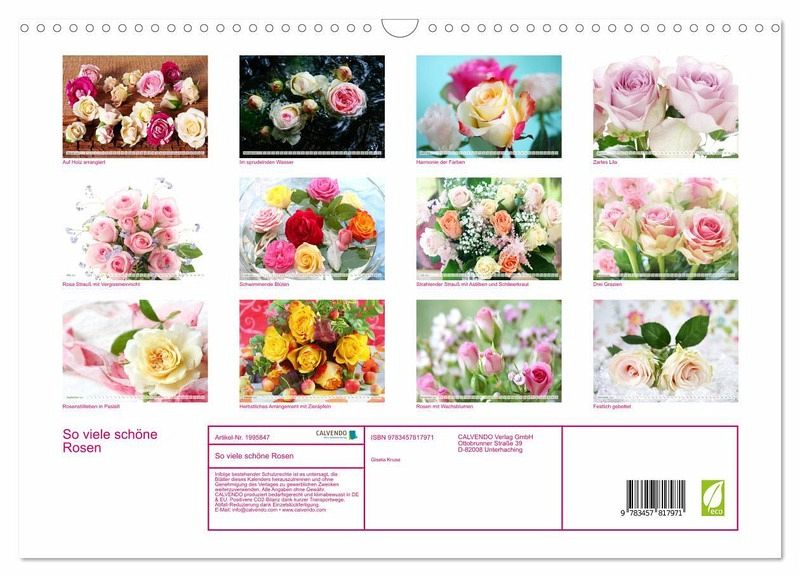 QUALITÄT - Hochwertiger Fotokalender mit 12 wunderschönen Motiven auf lichtbeständigem Bilderdruckpapier, robuste Spiralbindung mit Aufhängebügel.NACHHALTIG - deutliche Abfallreduzierung durch bedarfsgerechte Einzelstückfertigung, umweltfreundliches FSC-zertifiziertes Papier, Produktion in Deutschland, klimabewusste Logistik.PERFEKTES GESCHENK - Kalender für Freunde und Familie, für Kinder und Erwachsene, jung und alt, zu Weihnachten, Geburtstag oder zwischendurch.VIELFALT - Bildkalender in verschiedenen Formaten, z.B. DIN A5, DIN A4, DIN A3 sowie DIN A2. Ob Naturmotiv, Gemälde oder Fotos, ideal für ein persönliches Wohlfühlambiente.Rosensträuße und Rosenarrangements von Autor(in): Gisela Kruse