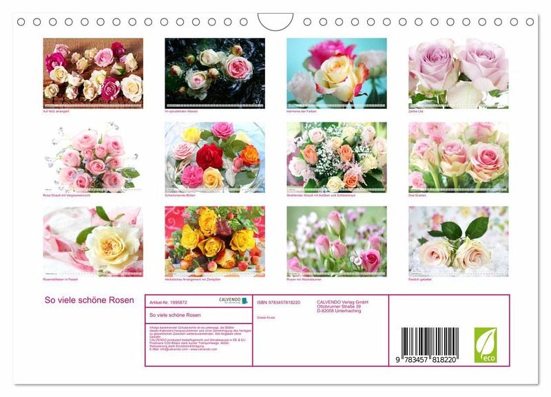 QUALITÄT - Hochwertiger Fotokalender mit 12 wunderschönen Motiven auf lichtbeständigem Bilderdruckpapier, robuste Spiralbindung mit Aufhängebügel.NACHHALTIG - deutliche Abfallreduzierung durch bedarfsgerechte Einzelstückfertigung, umweltfreundliches FSC-zertifiziertes Papier, Produktion in Deutschland, klimabewusste Logistik.PERFEKTES GESCHENK - Kalender für Freunde und Familie, für Kinder und Erwachsene, jung und alt, zu Weihnachten, Geburtstag oder zwischendurch.VIELFALT - Bildkalender in verschiedenen Formaten, z.B. DIN A5, DIN A4, DIN A3 sowie DIN A2. Ob Naturmotiv, Gemälde oder Fotos, ideal für ein persönliches Wohlfühlambiente.Rosensträuße und Rosenarrangements von Autor(in): Gisela Kruse