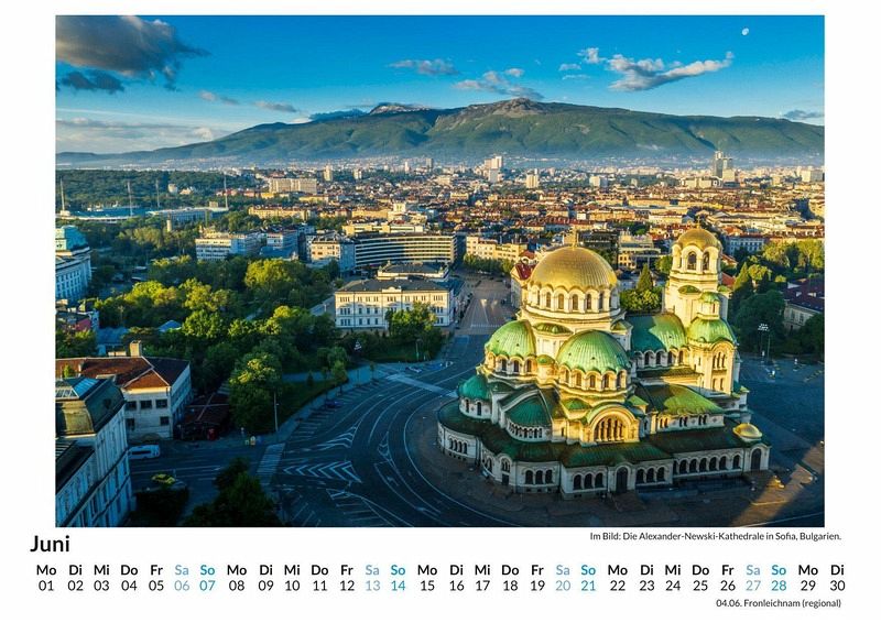 Entdecken Sie die faszinierende Schönheit Sofias, der Hauptstadt Bulgariens, mit unserem exklusiven Wandkalender! Lassen Sie sich Monat für Monat von 12 atemberaubenden Motiven verzaubern, die die kulturelle Vielfalt und architektonische Pracht dieser historischen Stadt einfangen. Gedruckt auf hochwertigem, lichtbeständigem Bilderdruckpapier, bringt dieser Kalender die Magie Sofias direkt in Ihr Zuhause. Nachhaltig in Deutschland auf FSC-zertifiziertem Papier produziert, ist er nicht nur ein optisches Highlight, sondern auch umweltfreundlich. Perfekt als Geschenk oder für die eigene Wand - holen Sie sich ein Stück Bulgarien nach Hause! Hochwertig Erleben Sie ein Jahr voller Eleganz mit unserem Premium-Fotokalender. Jedes der 12 Motive ist auf hochwertigem, lichtbeständigem Bilderdruckpapier gedruckt, um die Lebendigkeit jedes Bildes zu bewahren. Die robuste Spiralbindung gewährleistet Langlebigkeit und einfache Handhabung. Nachhaltig Unser Engagement für die Umwelt spiegelt sich in jedem Exemplar wider. Durch die Produktion auf Abruf reduzieren wir signifikant unseren Abfall. Wir verwenden ausschließlich umweltfreundliches, FSC-zertifiziertes Papier. Stolz gefertigt in Deutschland, achten wir bei unserer Logistik auf Klimaschutz, um unseren ökologischen Fußabdruck zu minimieren. Das ideale Geschenk Dieser Kalender ist das perfekte Präsent für jeden Anlass - ob Weihnachten, Geburtstage oder einfach als liebevolle Aufmerksamkeit zwischendurch. Geeignet für Freunde, Familie, Kinder und Erwachsene gleichermaßen, bereichert er jedes Zuhause mit seiner Vielfalt und Schönheit, unabhängig vom Alter der Beschenkten.