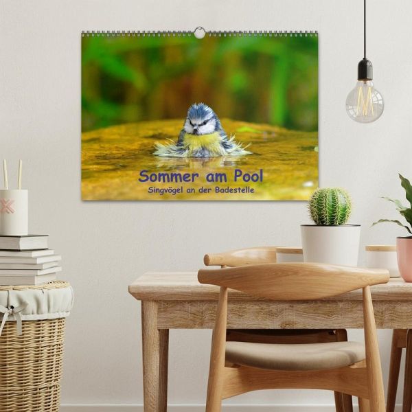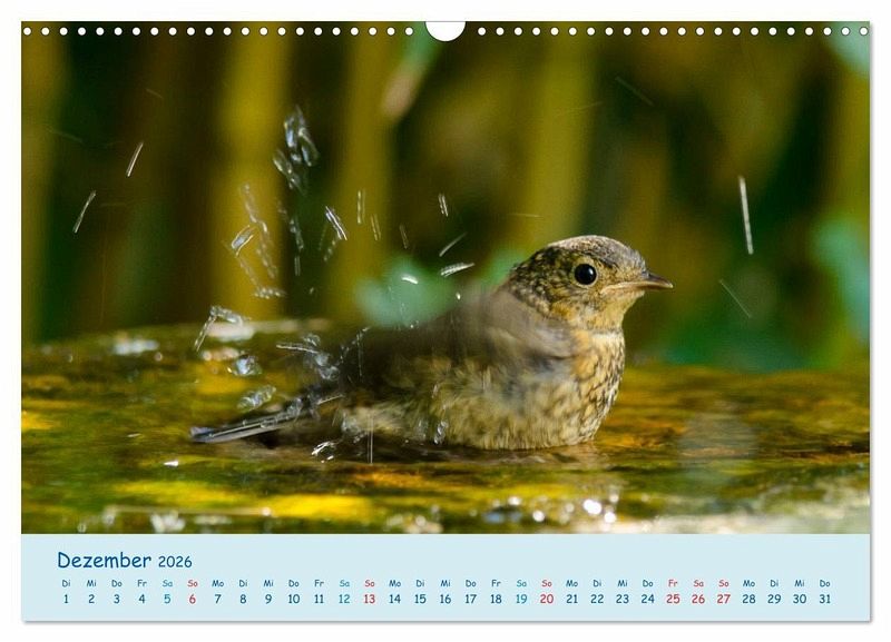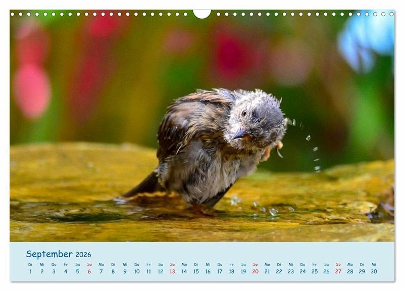 Dieser Kalender zeigt einheimische Singvögel beim spritzig-bunten Badevergnügen - eine Sammlung sommerlich-fröhlicher Motive für das ganze Jahr.
