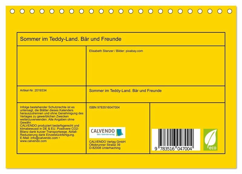 QUALITÄT - Hochwertiger Fotokalender mit 12 wunderschönen Motiven auf lichtbeständigem Bilderdruckpapier, robuste Spiralbindung.NACHHALTIG - deutliche Abfallreduzierung durch bedarfsgerechte Einzelstückfertigung, umweltfreundliches FSC-zertifiziertes Papier, Produktion in Deutschland, klimabewusste Logistik.PERFEKTES GESCHENK - Kalender für Freunde und Familie, für Kinder und Erwachsene, jung und alt, zu Weihnachten, Geburtstag oder zwischendurch.VIELFALT - Bildkalender in verschiedenen Formaten, z.B. DIN A5, DIN A4, DIN A3 sowie DIN A2. Ob Naturmotiv, Gemälde oder Fotos, ideal für ein persönliches Wohlfühlambiente.Niedliche Teddybären für große und kleine Menschen! von Autor(in): Elisabeth Stanzer