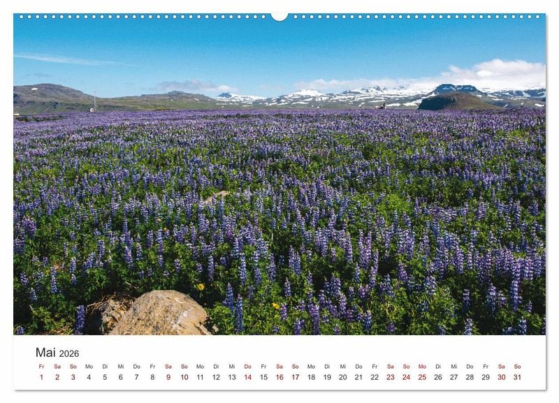 Mai: Feld der Lupinenblüten in Hellissandur