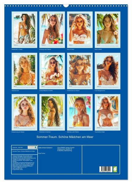 Dieser Kalender zeigt zwölf wunderschöne Illustrationen von Mädchen, die den Sommer am Meer genießen. Jede Szene wurde mit Hilfe von KI erstellt und fängt die entspannte und verführerische Atmosphäre eines perfekten Strandurlaubs ein. Lassen Sie sich Monat für Monat von diesen bezaubernden Bildern in Urlaubsstimmung versetzen. Tauchen Sie ein in die Welt von Sonne, Sand und Meer und genießen Sie das ganze Jahr über die Schönheit dieser bezaubernden Frauen.