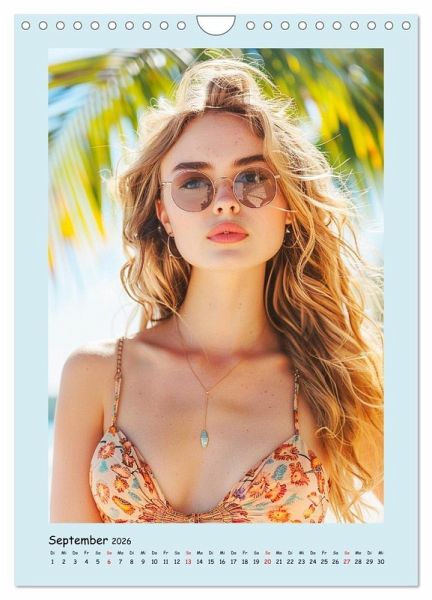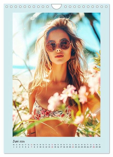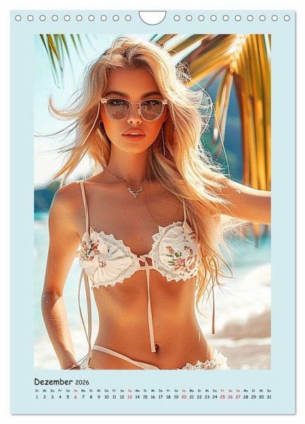 Dieser Kalender zeigt zwölf wunderschöne Illustrationen von Mädchen, die den Sommer am Meer genießen. Jede Szene wurde mit Hilfe von KI erstellt und fängt die entspannte und verführerische Atmosphäre eines perfekten Strandurlaubs ein. Lassen Sie sich Monat für Monat von diesen bezaubernden Bildern in Urlaubsstimmung versetzen. Tauchen Sie ein in die Welt von Sonne, Sand und Meer und genießen Sie das ganze Jahr über die Schönheit dieser bezaubernden Frauen.