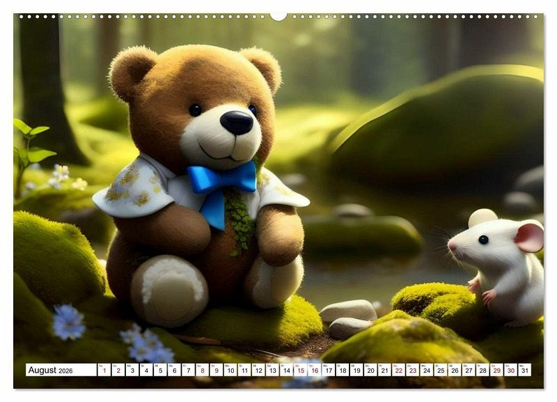 Im Sommer sitzen die kleinen Bärchen auf der Blumenwiese oder an einem Bach, freuen sich über Bienchen und Schmetterlinge oder ein niedliches Entchen und sind einfach nur glücklich, und ich mit ihnen, denn alle Bilder in diesem zauberhaten Kalender sind mit künstlicher Intelligenz entstanden. Dabei habe ich meine Texte in Bilder umwandeln lassen. Das Ergebnis ist einzigartig. Ich bin begeistert und wünsche viel Freude damit allen großen und kleinen Bärchenfreunden.
