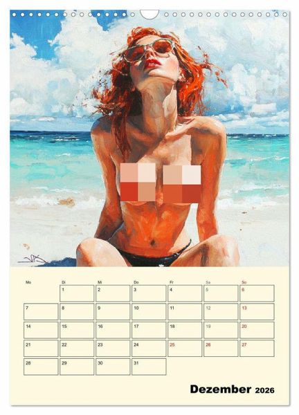 Dieser erotische Frauen-Kalender präsentiert sinnliche und starke Frauen am Strand. Alle Bilder sind im kunstvollen Ölgemälde-Stil und wurden mit Hilfe von KI erstellt. Jede Illustration fängt die ungezähmte Schönheit und das selbstbewusste Auftreten von Frauen im Sommer ein, während sie Wind, Sand und Meer genießen. Ein Kalender für alle, die die Verbindung von Sinnlichkeit, Kunst und Natur schätzen.