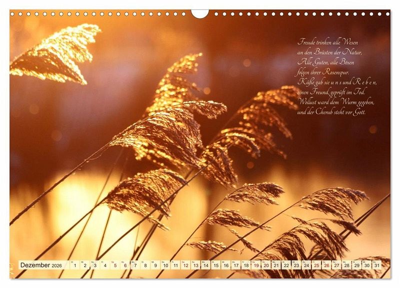 Die Wärme des Sommers ist ein kostbares Gut. Diese Fotos sind wie Fenster, die wir mit in den Winter nehmen können, um uns an die Freude und die Schönheit des Lebens zu erinnern. Wenn wir die Gedichte von Goethe und Schiller lesen, spüren wir die Begeisterung für das Leben und die Schöpfung. Lassen Sie sich von der Magie der Natur und der Poesie verzaubern und genießen Sie die harmonischen Farben!