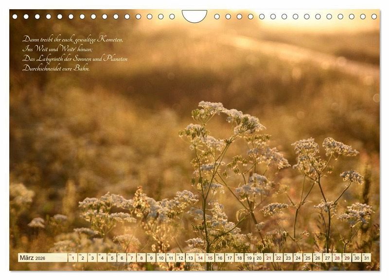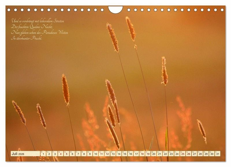 Die Wärme des Sommers ist ein kostbares Gut. Diese Fotos sind wie Fenster, die wir mit in den Winter nehmen können, um uns an die Freude und die Schönheit des Lebens zu erinnern. Wenn wir die Gedichte von Goethe und Schiller lesen, spüren wir die Begeisterung für das Leben und die Schöpfung. Lassen Sie sich von der Magie der Natur und der Poesie verzaubern und genießen Sie die harmonischen Farben!