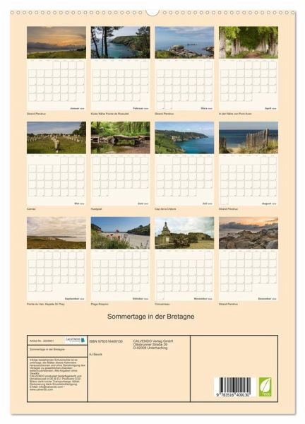 PREMIUM-LINIE - Brillanter Fotokalender mit 12 wunderschönen Motiven, Kunstdruck in Hochglanz in Museumsqualität.QUALITÄT - edle Materialien, stabile Rückwand mit 2 innovativen Einstecktaschen für eine optimale Präsentation an der Wand.NACHHALTIG - deutliche Abfallreduzierung durch bedarfsgerechte Einzelstückfertigung, umweltfreundliches FSC-zertifiziertes Papier, Produktion in Deutschland, klimabewusste Logistik.PERFEKTES GESCHENK - Kalender für Freunde und Familie, für Kinder und Erwachsene, jung und alt, zu Weihnachten, Geburtstag oder zwischendurch.Schöner planen mit den Bildern der zauberhaften Bretagne von Autor(in): Angelika Beuck